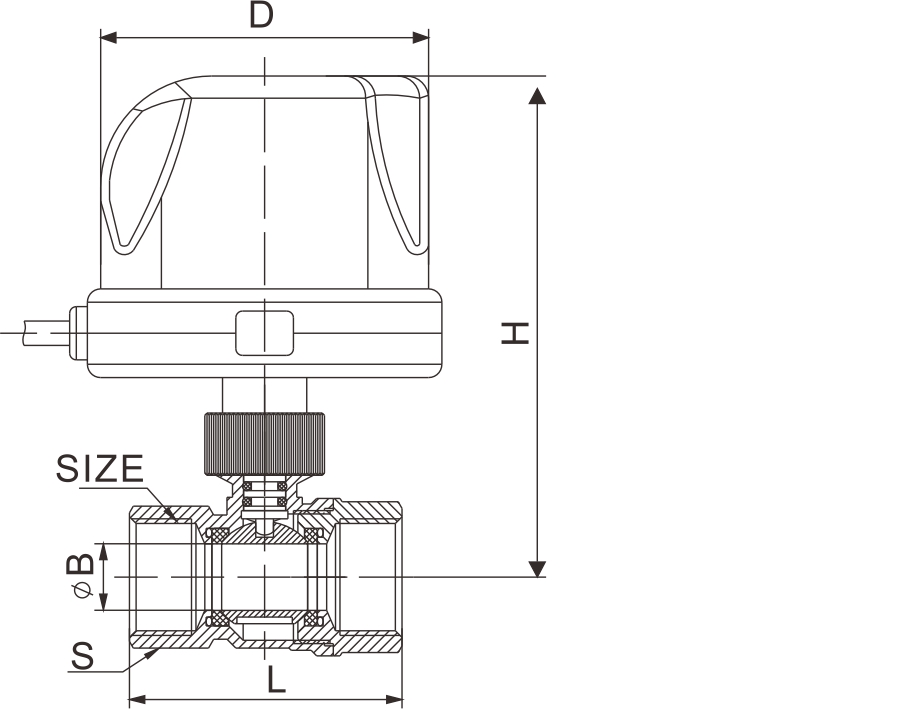 本系列是自檢智能型電動球閥。適用于采暖系統和空調風機盤管系統中的通斷控制,由球閥與執行器組成,執行器帶動閥球作旋轉90。運動。執行器內部采用同步電機驅動,內置限位觸點,能使閥[ ]在全開或全關時斷電,動作穩定。外部采用LED燈指示,紅綠燈切換來判斷閥門是否正常開啟或關閉,達到自檢功效。(當閥門全開時,紅燈滅綠燈亮。當閥門全關時,綠燈滅紅燈亮。如果閥門未完全打開或關閉時,紅燈與綠燈同時亮。檢修人員只要一看燈,就能知道問題所在。更適合在窄小、黑暗、不方便檢修的地方安裝使用。如:中央空調末端水路控制處安裝使用)。