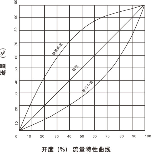 1、線性流量特性,開度大時流量大,開度小時流量小;